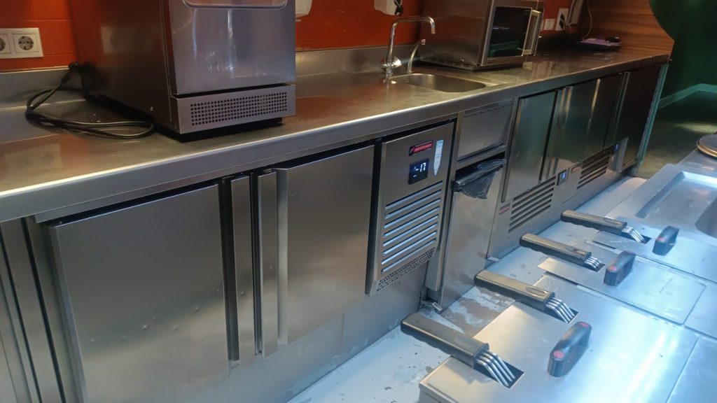 Realizamos mantenimiento preventivo y correctivo de timbres, cámaras frigoríficas de positivo y negativo, freidoras, planchas, lavavajillas, máquinas de hielo y otros equipos de cocina industrial.